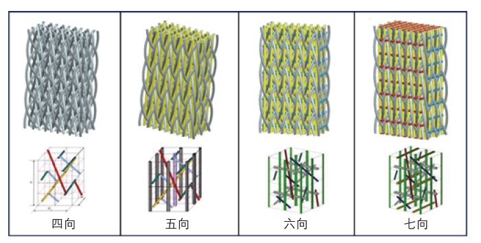 高性能复合材料具有轻质、高强等特点,被广泛应用于军事和民用领域。复合材料主要由增强体和基体材料组成,其中增强体结构决定着复合材料的最终力学性能。随着复合材料性能要求不断提高,其增强体的结构由单向纤维增强发展到二维织物、三维织物增强,显著提高了复合材料的面内和面外性能。