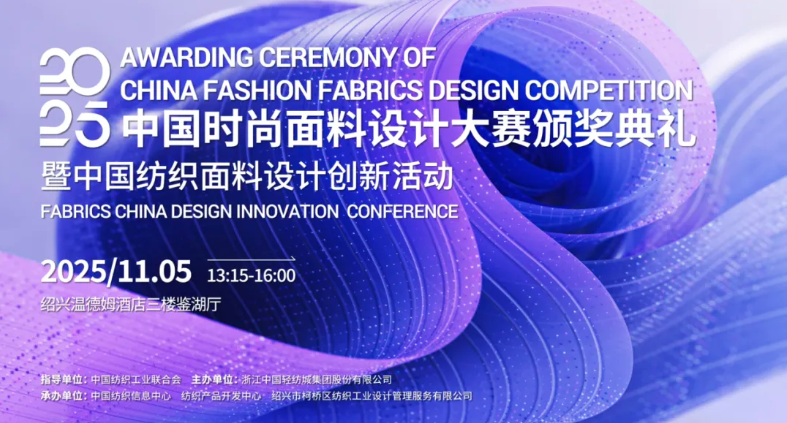 在设计端,数字化决策体系正高效赋能产品开发;在消费端,绿色可持续与功能场景化需求正在成为市场主流。如今的面料设计,已跳出生产开发的单一维度,成为契合消费市场需求、助力品牌焕新的关键引擎,持续驱动着行业的创新与转型。为进一步激发设计活力、汇聚产业智慧,2025中国时尚面料设计大赛颁奖典礼暨中国纺织面料设计创新活动将于11月5日在绍兴柯桥举行。