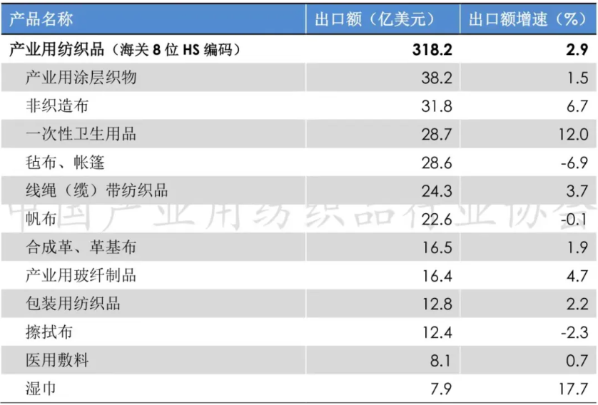 表2 2025年1-9月我国产业用纺织品行业及主要产品出口情况