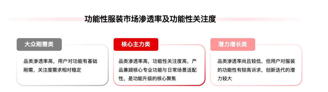 这一过程中,女性购买力崛起,为生活品质购买高价值的功能性服饰,已然成为一种“悦己投资”。在质量、审美与生活态度之间寻求平衡,该人群在功能性服饰消费上表现出高意愿与高投入的特征,已成为中高端市场的消费主力。