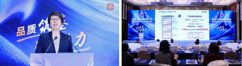 江苏新瑞贝生物科技股份有限公司市场总监张萍在《生物基化学品助力羽绒产业绿色可持续发展》的分享中提出,面对羽绒水洗领域性能与环保难以兼顾、异味根除难度大、绿色壁垒加剧等行业困局,企业要从全流程发力:在源头上,用生物基替代石油基,控制污染源头;在生产流程中,从原料到产品检测、认证、吊牌提供全过程绿色供应链支持,以“产品+工艺+检测”模式,推进水洗厂搭建绿色标准,降低碳排放。