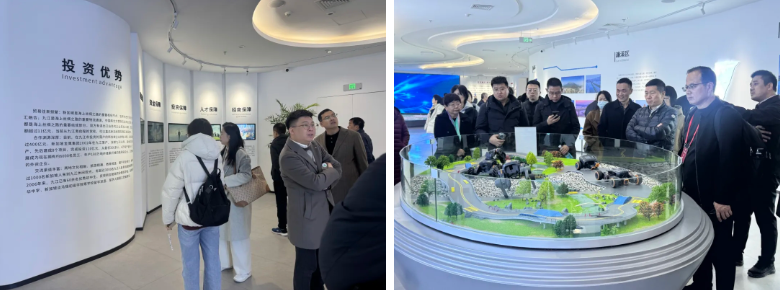 中国—新加坡(江西)产业园是江西省推动高水平开放与高质量发展的重要国际合作平台。走进产业园展厅,嘉宾们深入了解了园区“园中园”发展模式与“一园两区”空间布局,包括聚焦人工智能、机器人、电子信息的鄱阳湖生态科技城片区和聚焦新能源、新材料的姑塘片区,直观感受了当地前沿科技领域与绿色制造领域创新发展的先进成果。