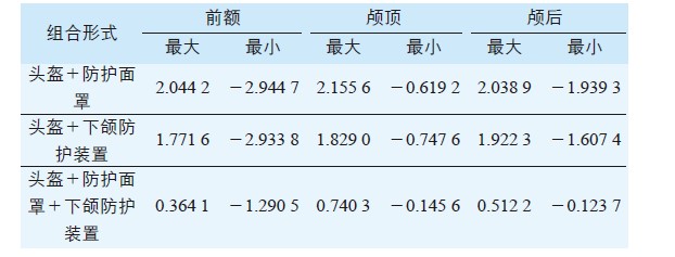 国外方面,RODRIGUEZ等基于有限元分析发现由ACH头盔(带OA泡沫内衬)、防护面罩和下颌防护装置组成的全盔系统对爆炸冲击波的防护效果显著,表 1 为ACH头盔加装防护面罩、ACH头盔加装下颌防护装置、ACH头盔加装防护面罩与下颌防护装置后不同爆炸位置的峰值颅内压。SHYAM等从生物医学与设计角度指出,增加头盔的覆盖面积和密闭性十分必要。
