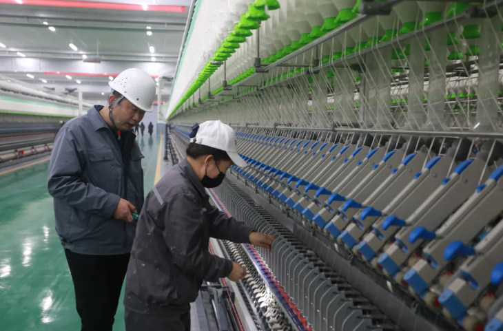 据悉,该项目从7月31日土建动工,到全线贯通出纱,用时仅138天,创下了近年来纺织业最快投产纪录。对此投产速度,喀什新投总经理王新生给予这样的评价,他指出, 这一速度源于经纬纺机与喀什新投的“双向奔赴”,共同根植于振兴纺织产业的使命与情怀: