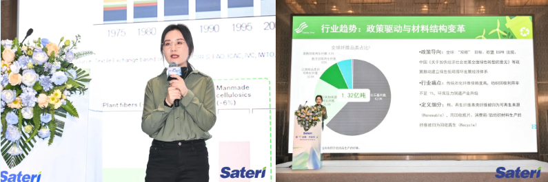 作为对话环节主持人,赛得利集团下游市场拓展总监潘燕华全面介绍了赛得利纤维素纤维在品牌升级、产品迭代及下游应用等方面的发展,重点强调了莱赛尔纤维在针织、牛仔、梭织等领域的突破性进展。