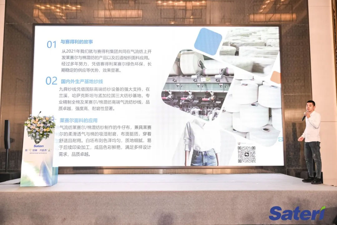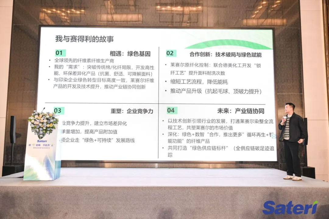 肇庆市佳利印染有限公司副总经理黄健成提到,公司与赛得利因绿色理念结缘,共同开发了流程精简、生产低碳的新工艺面料产品。未来,双方将通过“绿色+数智”的持续合作,推出更多符合市场差异化需求的绿色产品。