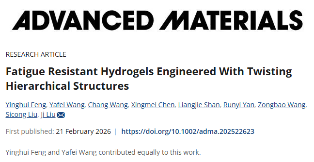 南方科技大学刘吉副教授课题组提出了一种受生物启发的扭转分层结构设计策略,成功制备出具有超高抗疲劳性的水凝胶纤维。通过精确控制扭转参数,研究团队实现了拉伸应变提升200%、断裂韧性增加150%、疲劳抗性提高1000%以上的显著突破,为传统聚合物水凝胶网络赋予了前所未有的抗疲劳性能,标志着功能性软材料设计的重大进展。相关论文以“Fatigue Resistant Hydrogels Engineered With Twisting Hierarchical Structures”为题,发表在Advanced Materials上。