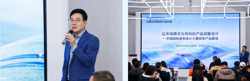 “这款三合一复合软壳衣面料适合非专业场景的通勤搭配和基础防护需求。这款羊毛面料应用功能性印花膜材复合技术,构建可调节温度的气候微循环,使皮肤表面微气候保持舒适状态。”3月31日,在“产品创新逻辑:从需求洞察到价值共创”专题培训会上,纺织产品开发中心副主任陈宝建详细解读了中国国际面料设计大赛、中国时尚面料设计大赛、中国生态环保面料设计大赛等专业赛事的十余款获奖产品。从科技、时尚、绿色三方面创新出发,他指出,产品开发既要“做加法”,创造新的价值点;也要“做减法”,去掉冗余设计,回归理性实用价值。