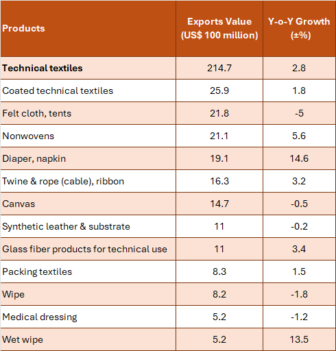 Table 2: The Exports of Main Products in China’s Technical Textile Industry in H1, 2025
