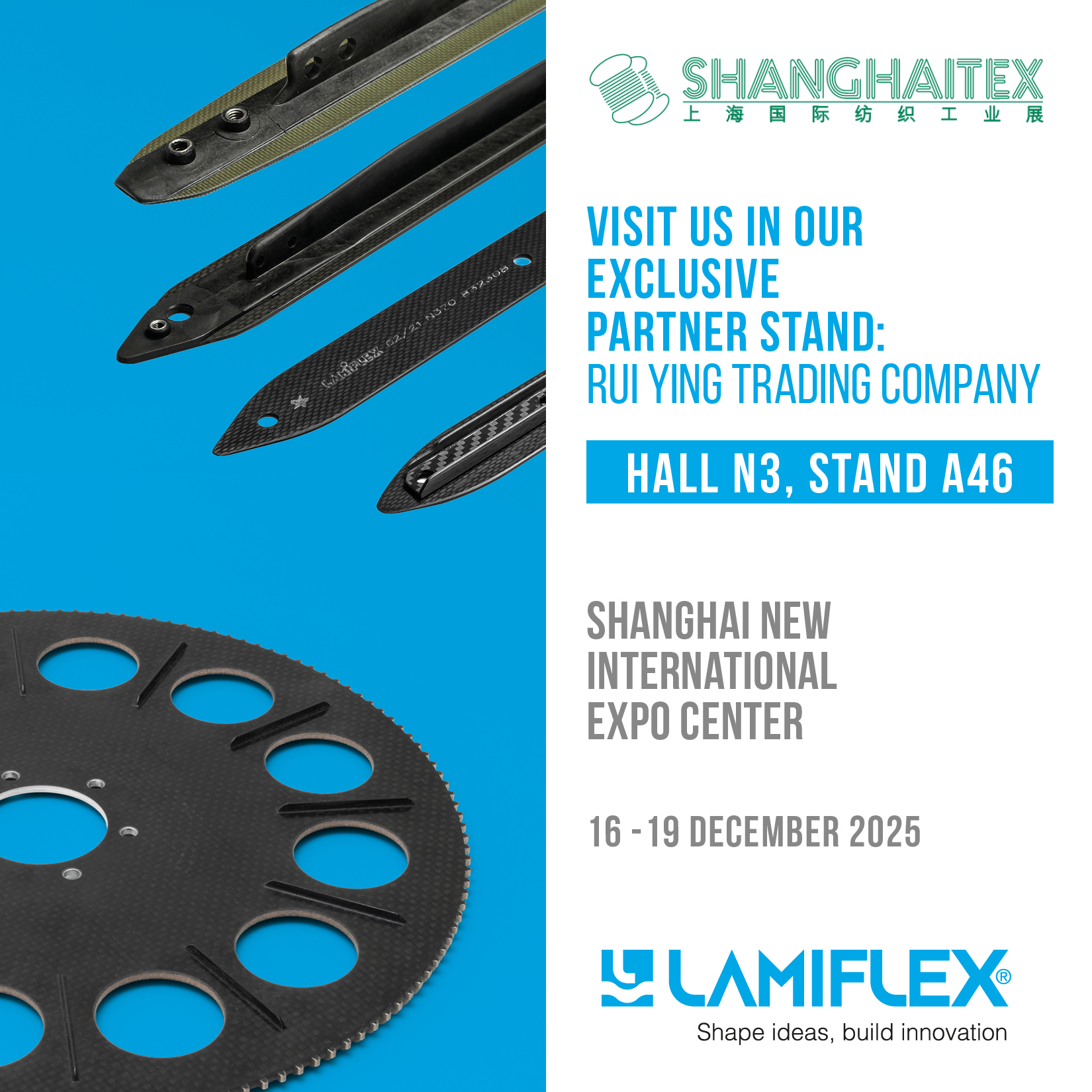 Lamiflex, a leading Italian company specialized in the production of high-performance composite components for the Textile, Industrial, Aerospace & Defense, and Medical sectors, is pleased to announce its participation in Shanghaitex 2025 at the stand of Rui Ying Trading Company Ltd (Hall N3 – Stand A46).