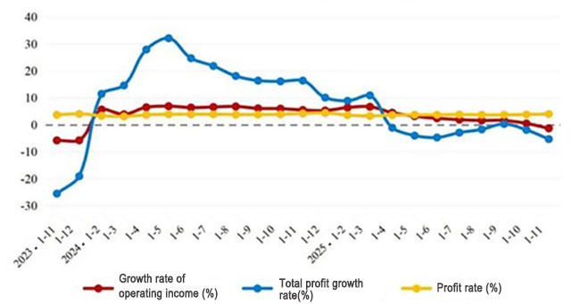 Figure: Growth Rate of Key Economic Indicators of China’s Technical Textiles Industry in January-November, 2025