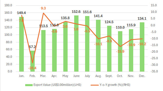 • To ASEAN: US$12.32 billion (–19.6% YoY).