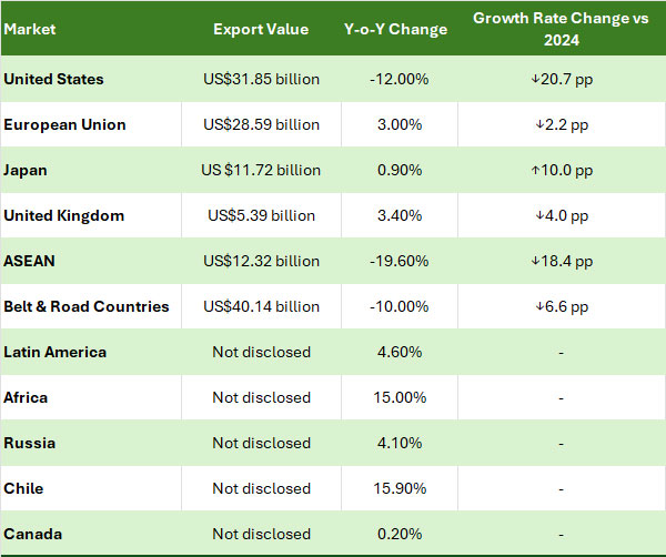 Table: China’s Apparel Export Data by Major Markets (Jan.-Dec. 2025)
