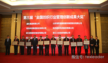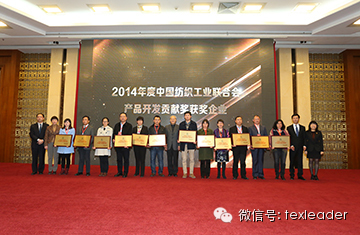 会议同期,主办方还举行了“第三届全国纺织行业管理创新成果大奖”和“2014年度中国纺织工业联合会产品开发贡献奖”颁奖典礼,对获奖单位进行了隆重表彰。
