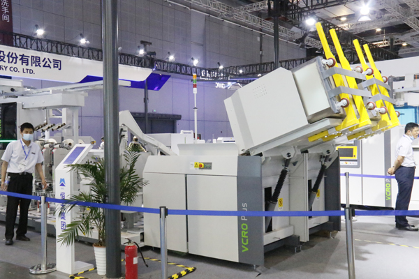 展会现场,青岛宏大自主研发的VCRO系列络筒机凭借其可靠灵活、精准高效的特点深得观众青睐。VCRO PLUS双纱库型自动络筒机作为青岛宏大自主研发的新一代双纱库型自动络筒机,它能够满足用户使用 1 台设备纺两个品种的需求,筒纱品质更优、生产效率更高、维护更加简便。