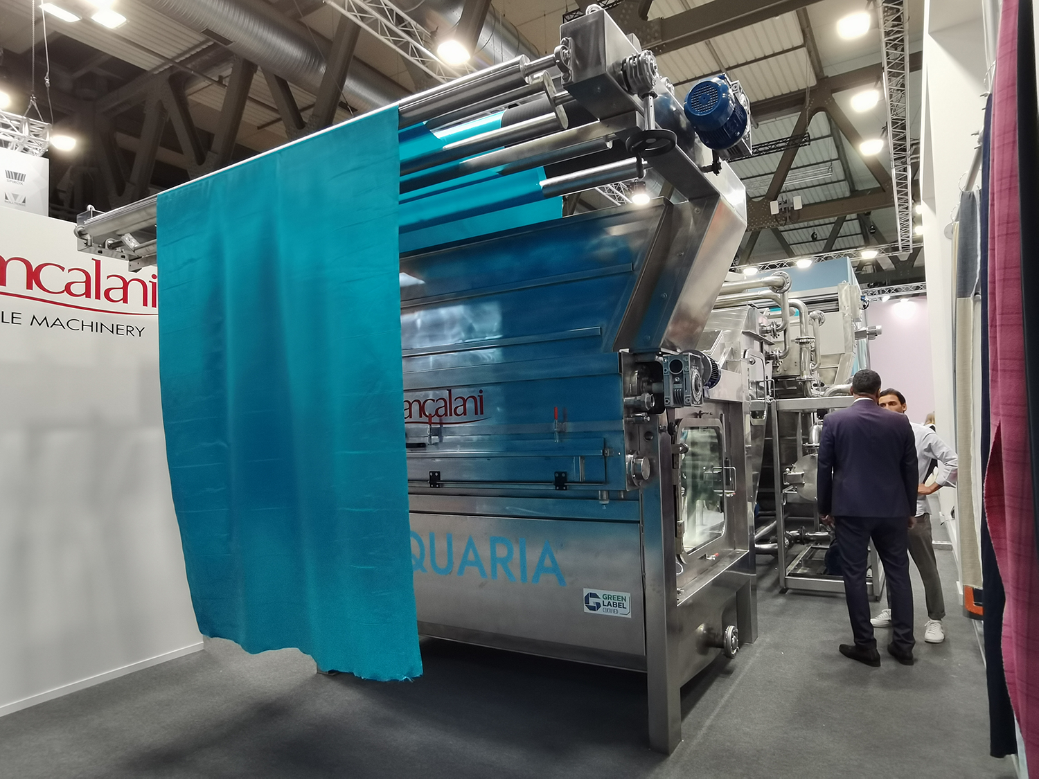 Biancalani(白卡拉尼)的Aquaria®连续开幅水洗机适用于任何类型的纺织品湿处理,可以整合到各类工艺中,包括漂白工艺、煮练工艺、丝光工艺、印花染色后水洗工艺、再生纤维素纤维织物的原纤化处理工艺等,提供延长且可调节的织物停留时间以及机械作用,最高生产速度达到80 m/min。此外,新工艺及配套设备能够助力Aquaria®以生态可持续方式对传统纺织品后整理工艺进行升级,例如,在漂白工艺上选用可生物降解的漂白剂,减少了对环境的污染;煮练工艺选用天然洗涤剂而非化学溶剂来处理涤纶织物上的油污,并实现了出色的水洗效果;印后水洗工艺与Aquaria®连续开幅酶洗相同,其能通过节水和节能来真正实现高成本效益。