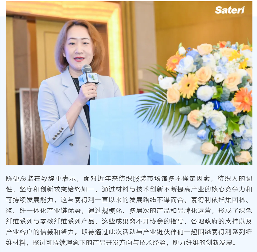 在产品开发应用交流环节,赛得利集团市场推广各版块负责人、行业协会代表、优秀企业与品牌代表等,围绕赛得利系列纤维的开发方向与创新应用从不同角度进行了专题分享。