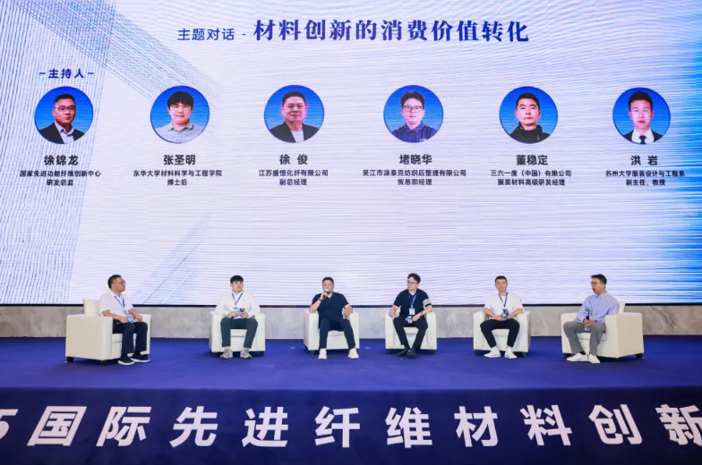 在“材料创新的消费价值转化”主题对话中,国家先进功能纤维创新中心研发总监徐锦龙围绕先进材料的产业痛点、突破方向及协同模式,与来自专业院校、纤维企业、面料面料和终端品牌的嘉宾展开了前瞻探讨。