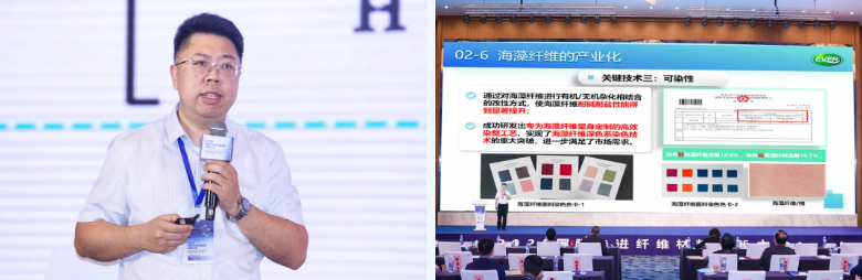 “海藻纤维是目前植物基再生纤维中,唯一不加任何化学成分和功能助剂就具有抑菌、阻燃、吸湿远红外等特性的纤维。”宫兆庆分享的海藻纤维引发关注。他指出,艾文生物在可纺性、可染性、面料牢度等关键技术领域实现突破,推出了与棉、莫代尔、粘胶、涤纶等多种纤维混纺的纱线产品,有助于医用卫生、美容护肤等高端领域的产品实现“健康+舒适”双在线。