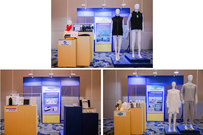 静态展示区更让技术触手可及。3秒速热、智能控温的保暖马甲,天然抑菌、持久透气的海藻纤维面料,高精度色彩测量仪器……国家先进功能纤维创新中心、艾文生物与datacolor以丰富的创新产品展现了新型纤维在T恤、内衣、运动、家纺等多个领域的创新应用方向,以及从原料到成品的全流程色彩解决方案,促进了产业链上下游企业之间的深度交流。
