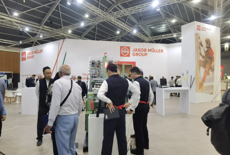 JAKOB MÜLLER(约科布·缪勒)公司在全球窄幅织物织造、条带织造、商标织造、技术纺织品、印花窄幅织物、染色、包装和卷绕机械等领域处于技术领先地位。该公司可满足条带和窄幅织物行业从纱线加工到成品的所有需求。在本届展会上,约科布·缪勒公司展出了MÜGRIP® MBJ8.1和NFME窄幅织机。