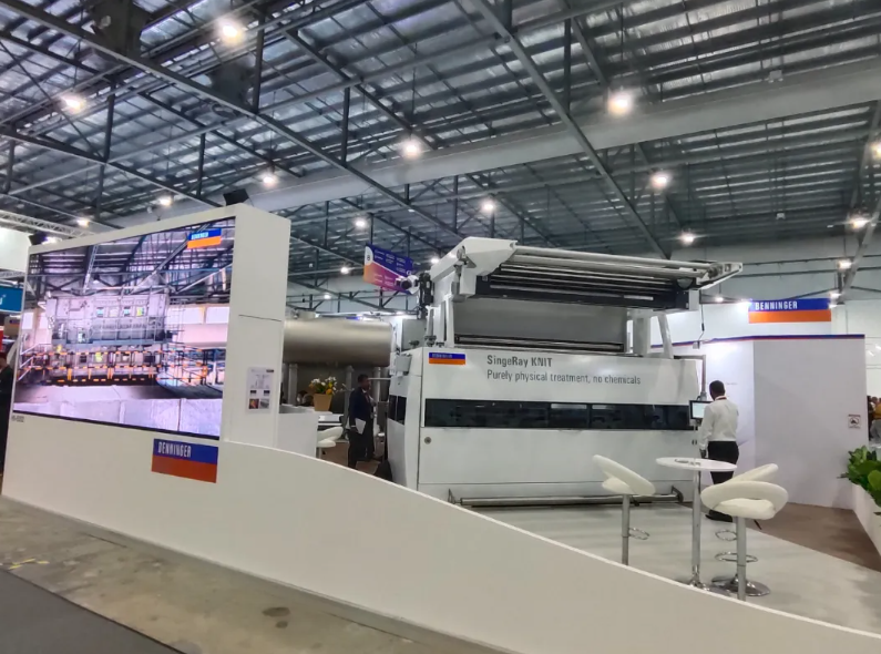 Benninger(贝宁格)是一家深耕纺织湿整理领域的纺织设备企业,其产品涵盖机织物、针织物的连续平幅处理、间歇式染色系统及产业用纺织品解决方案等纺织行业的多个细分领域。在本次展会期间,贝宁格展示了一款全新的针织物烧毛机,并同步展出其成熟的染整系统解决方案。