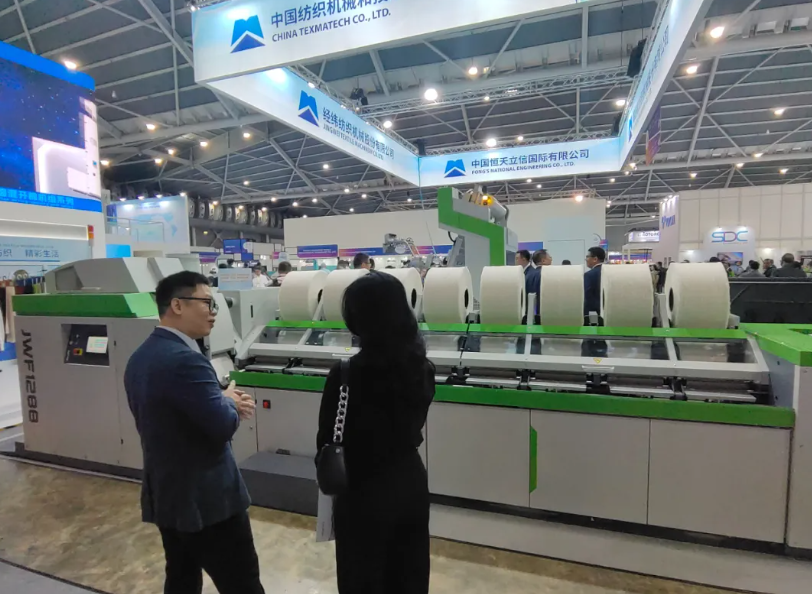本次展会期间,经纬纺织机械有限公司旗下的青岛宏大纺织机械有限责任公司(以下简称“青岛宏大”)、经纬智能纺织机械有限公司(以下简称“经纬智能”)、沈阳宏大华明纺织机械有限公司(以下简称“沈阳宏大”)等集体亮相中国恒天集团站台,充分展示了其在智能化、高速化、绿色化方面的技术解决方案。