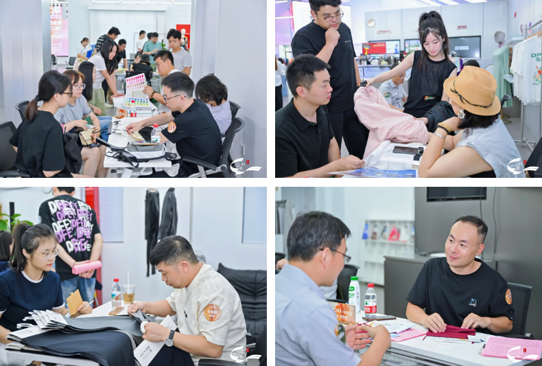 对接会现场,面料企业在独立展架上展示了丰富的样布及样衣产品,让品牌采购商能够直观地了解面料材质、风格、手感等特性,并通过详细推介,使品牌更加全面地获悉了面料的设计理念、技术工艺、应用场景。