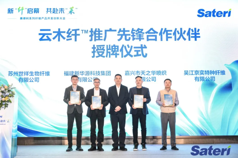 福建新华源科技集团有限公司、嘉兴市天之华喷织有限公司、苏州世祥生物纤维有限公司、吴江京奕特种纤维有限公司在云木纤™开发初期便深度参与共创、积极探索应用,是推动云木纤™走向产业、服务消费的重要力量。刘涛为四家“云木纤™推广先锋合作伙伴”企业进行了授牌。