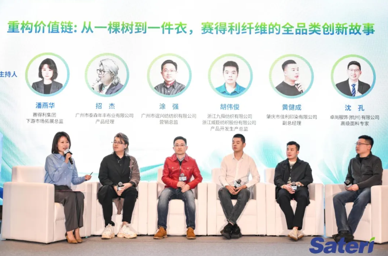 作为对话环节主持人,赛得利集团下游市场拓展总监潘燕华全面介绍了赛得利纤维素纤维在品牌升级、产品迭代及下游应用等方面的发展,重点强调了莱赛尔纤维在针织、牛仔、梭织等领域的突破性进展。