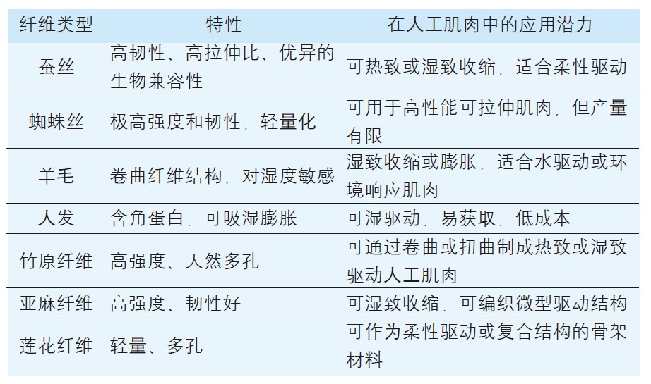 表 1 典型的天然纤维特性及在人工肌肉中的应用潜力