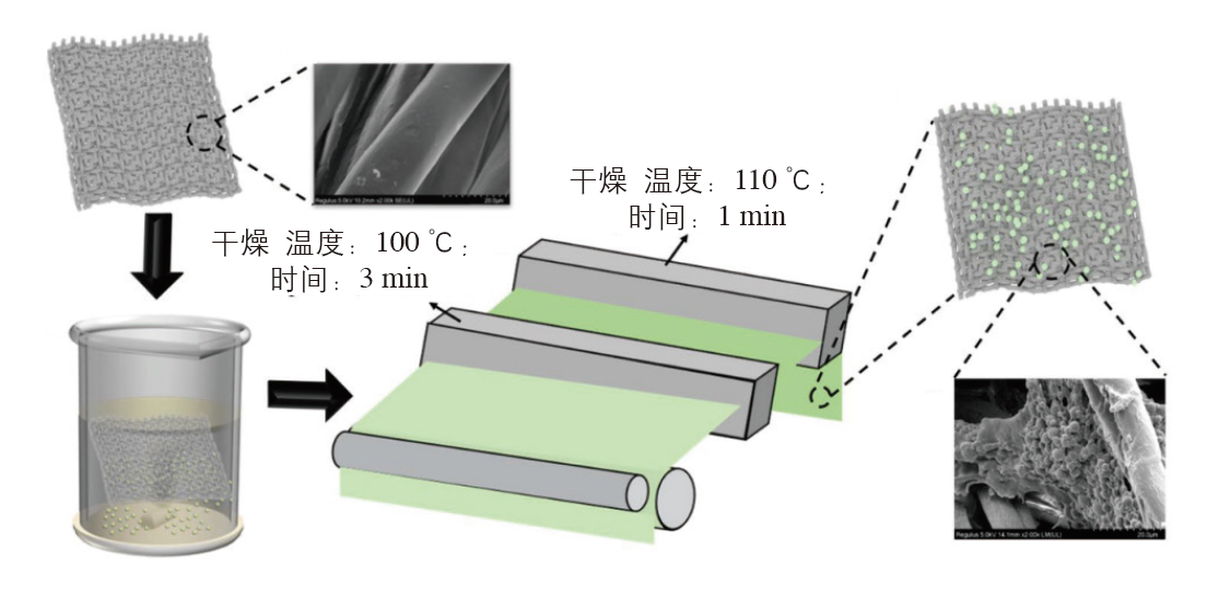 利用微胶囊技术将不同功能性囊芯包覆起来,可以制备具有不同功能性的微胶囊产品,其在纺织品领域应用广泛。纺织领域常用的功能微胶囊主要包括芳香微胶囊、相变微胶囊、防紫外微胶囊、变色微胶囊和护肤微胶囊等,其主要通过浸轧、浸渍、涂层、印花或纺丝共混等方式附着于纺织品中,赋予纺织品相应的功能性。
