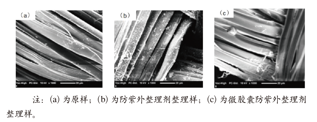 周小燕利用复凝聚法制备了以植物源防紫外整理剂为囊芯,以明胶和阿拉伯胶为壁材的生物基防紫外微胶囊,并与未包覆的植物源防紫外整理剂进行了应用对比,结果表明微胶囊化既可以保证紫外防护效果亦可以提升织物的耐水洗性能。
