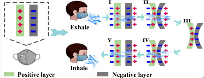 摩擦发电空气过滤膜工作过程