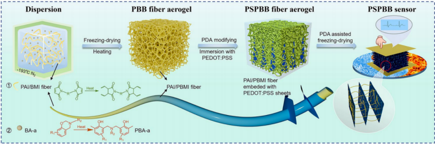 PSPBB纤维气凝胶传感器的制作过程示意图