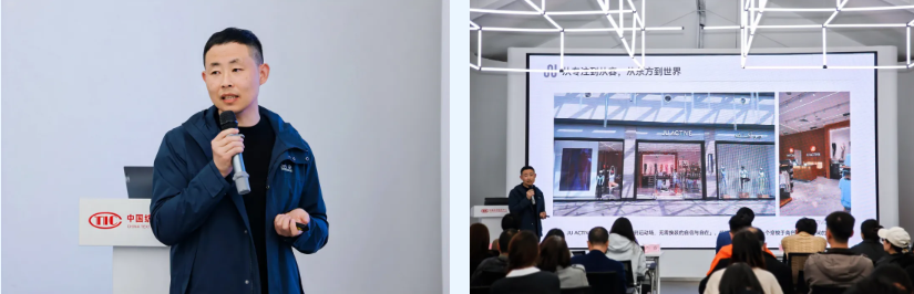 随着生活节奏的加快,消费者场景切换的需求愈加频繁,来自市场一线的“实践者”,带来了接地气的创新经验。“JU ACTIVE 正把这份‘从通勤到运动场,无需换装的自信与自在’,悄悄带给全世界每一个穿梭于角色与场景之间的你。”浙江极由科技有限公司总经理助理叶飞在《时尚轻运动产品创新关注点》中指出,终端消费的新通勤主义要求服饰实现从会议室到运动场的自由切换,不再割裂着装者的日程。他介绍了JU-Lab面料实验室开发的面料融入Atmo-Matrix气层矩阵科技,实现了“第二层皮肤”般的贴合感。