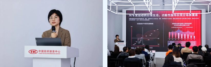 如今,功能性服饰早就不局限于专业运动场景,走进了普通人的日常生活,这也成为了现场讨论的热点。“我国功能性服装市场呈现出‘主流品类稳健、细分新锐爆发’的多元化增长格局,已形成‘安全为底线,舒适为核心’的消费共识。”中国纺织信息中心科技信息部副主任赵永霞在《以场景为中心的功能性纺织产品开发》分享中指出,随着功能性服饰向全场景渗透,消费者诉求主要聚焦于内在疗愈、运动休闲、自然探索三大生活切面,构筑起功能性服装新版图。