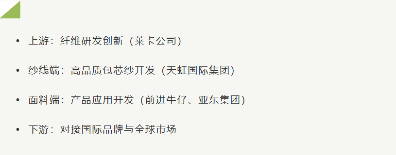 在传统模式下,纺织行业的竞争主要集中在单一环节效率(如纺纱、织造、染整)以及成本与交付能力比较。然而,随着可再生莱卡®纤维规模化应用的推进,一种新的商业逻辑正在悄然成型:以材料创新为引,通过全价值链的协同赋能,重塑材料的商业价值。