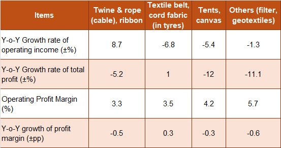 In terms of economic benefits, from January to November, the operating income of enterprises above the designated size in China’s technical textile industry down by 1.3% year-on-year. The total profits dropped by 5.3% year-on-year. And the profit rate was 4.0%, down 0.2 percentage points year-on-year.