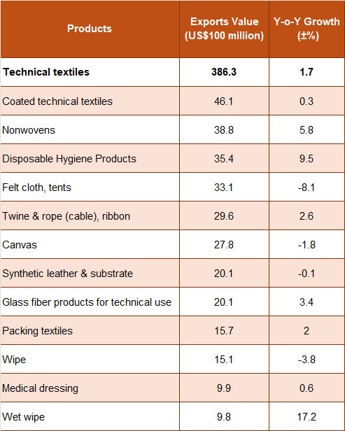 Table 2: The Exports of Main Products in China’s Technical Textile Industry in Jan.-Nov., 2025